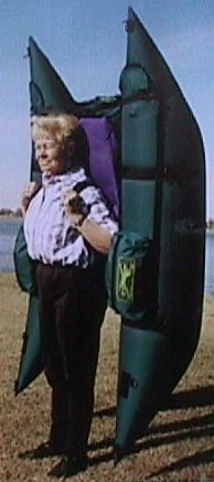 Unfolds from it own backpack into a PONTOON BOAT or convert to a chair set up at